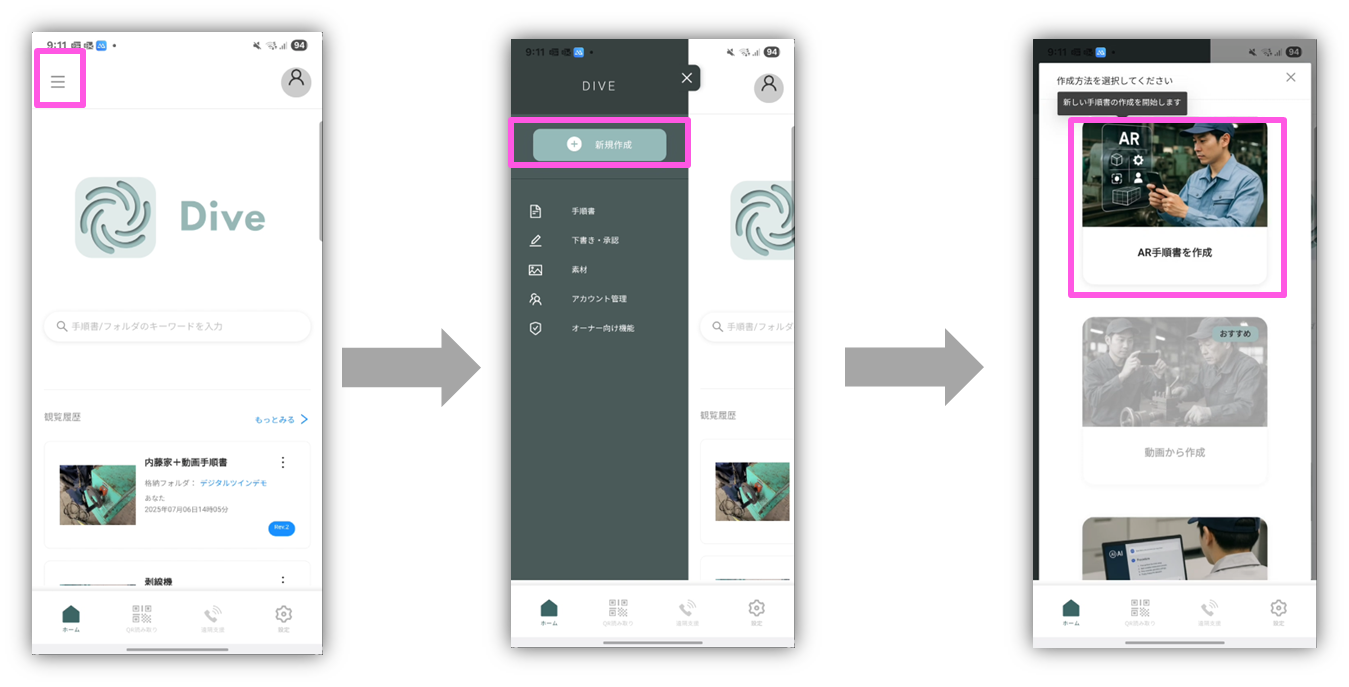 AR手順書作成は、スマホアプリから行います。