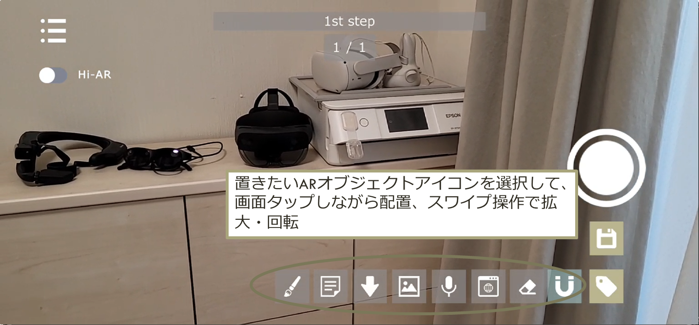 - 画面上で移動させるのではなく、自らが動いて「置く」感覚でオブジェクトを配置する。