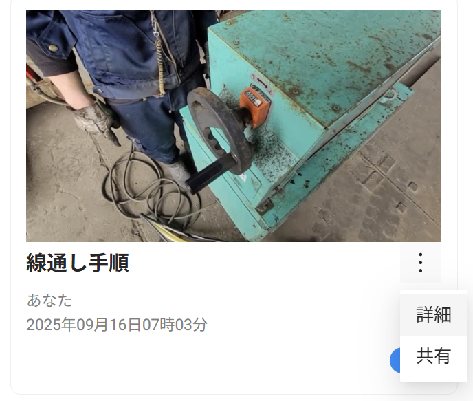 QRコードを印刷したい/共有URLをコピーしたい 2025年09月25日 05:44 更新 まず、手順書を発行します。 当該の手順書を探し、[・・・]をクリックし、[共有]をクリックします。3. URLを得られる画面がでます。所望のURL(QRコード)をコピーしてください。 関連記事 前回の保存状態に戻したい MP4出力 有償プランの無料トライアルの開始方法・サポート AR手順書の作成方法 2026-02-02 【新機能リリース】 2段階認証