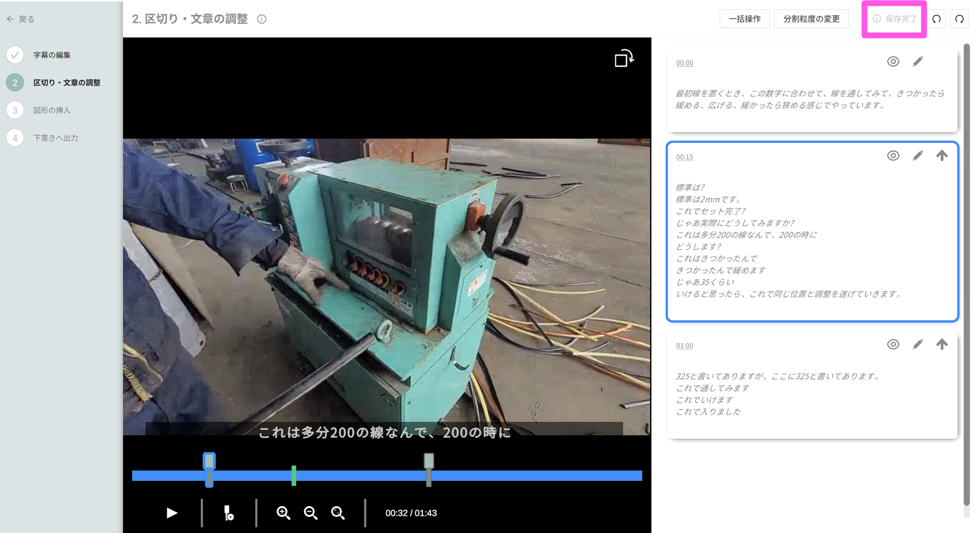 動画素材の編集画面での操作
