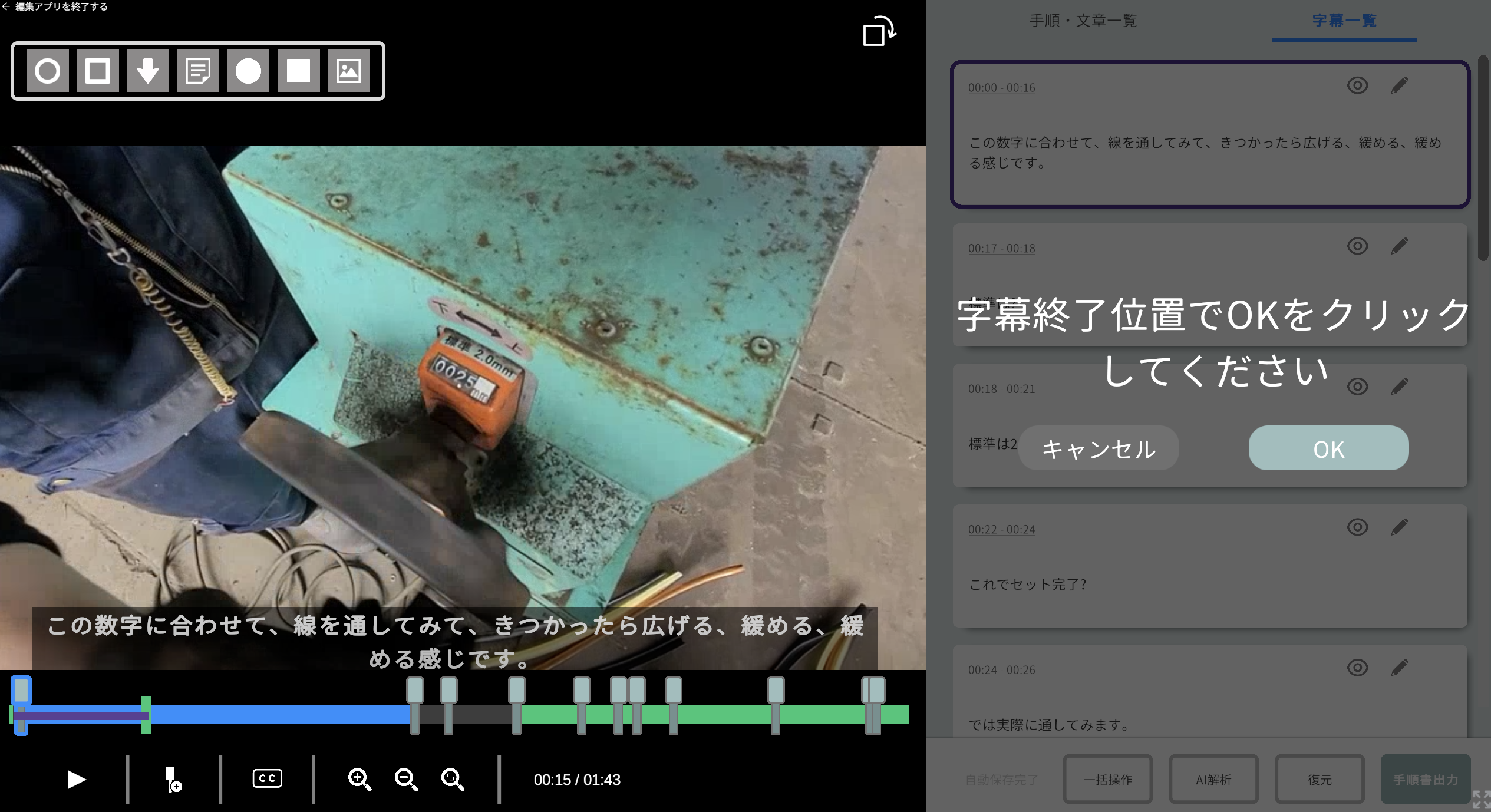 操作方法:手動での字幕挿入方法