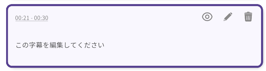 また、字幕挿入された字幕削除も右のリストにあるブロックのゴミ箱ボタンで削除できます。