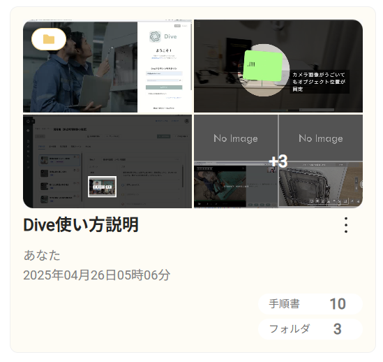 手順書一覧で確認できるフォルダアイコンの仕様変更をしました。フォルダ内にある手順書のサムネイル一覧、手順書数・フォルダ数が表示されるようになりました。そのため、フォルダに実際にアクセスせずとも内容概要を掴むことができるようになりました。