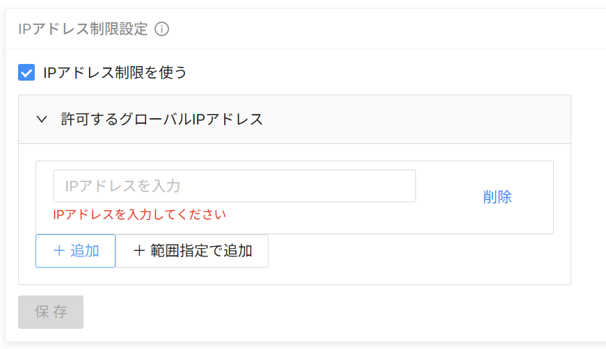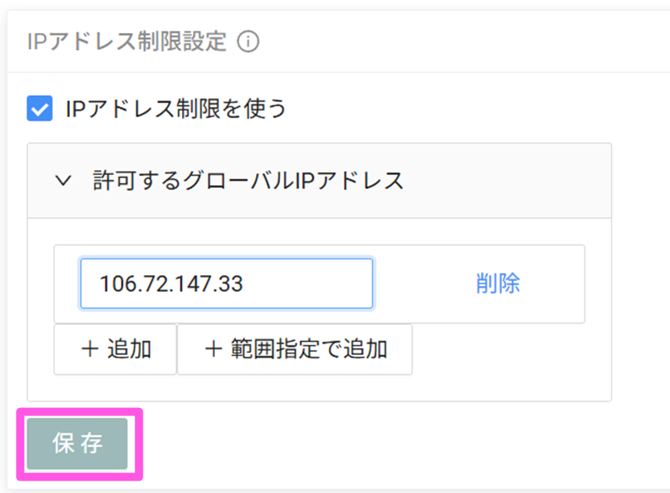 - 許可するIPアドレスを入力(IPv4形式に対応しております)