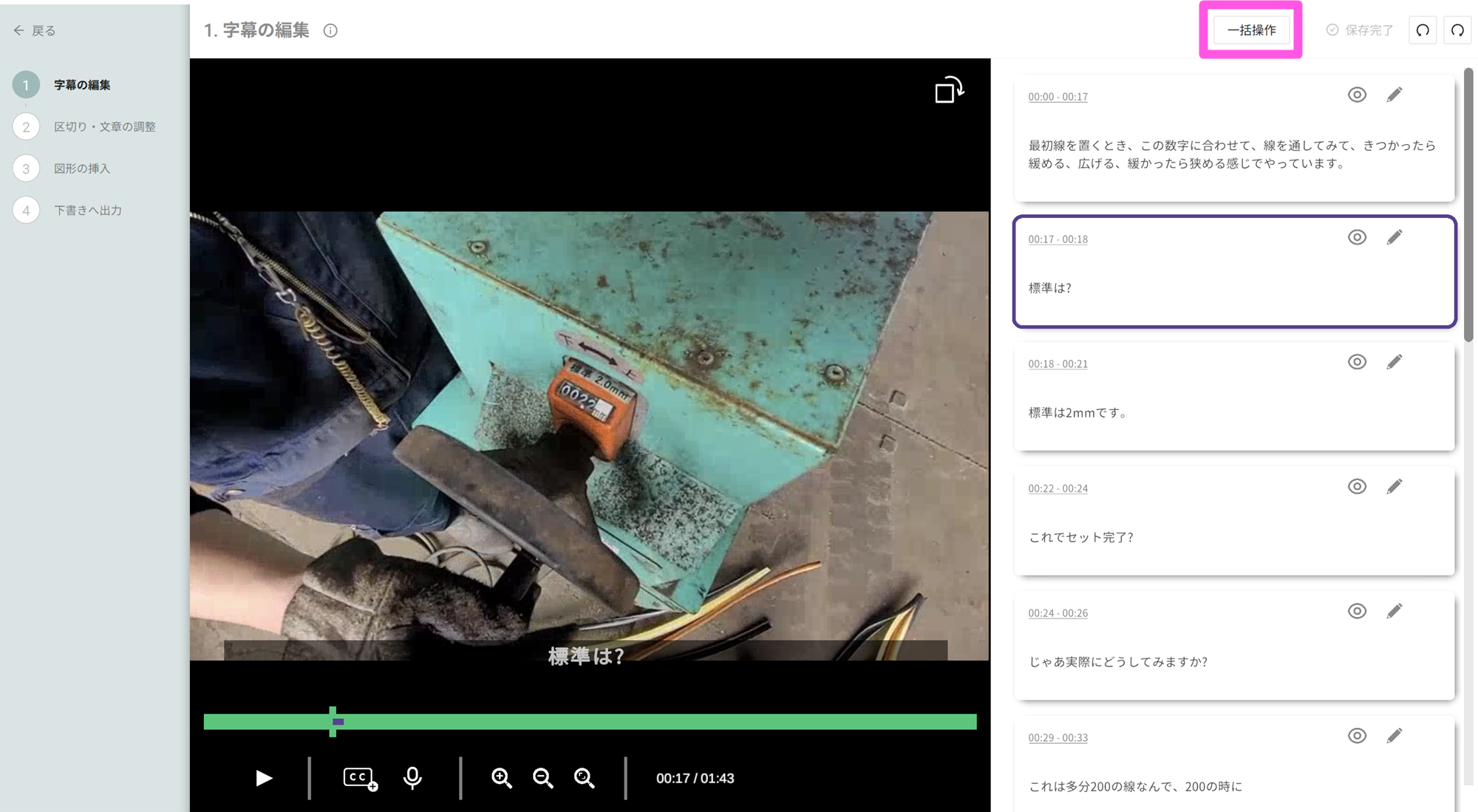 [字幕の編集]モードにて、[一括操作]をクリック