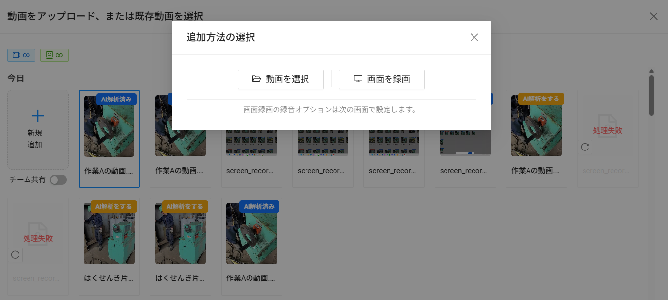 PCから動画素材の新規追加時に選択肢がでるようになっております。