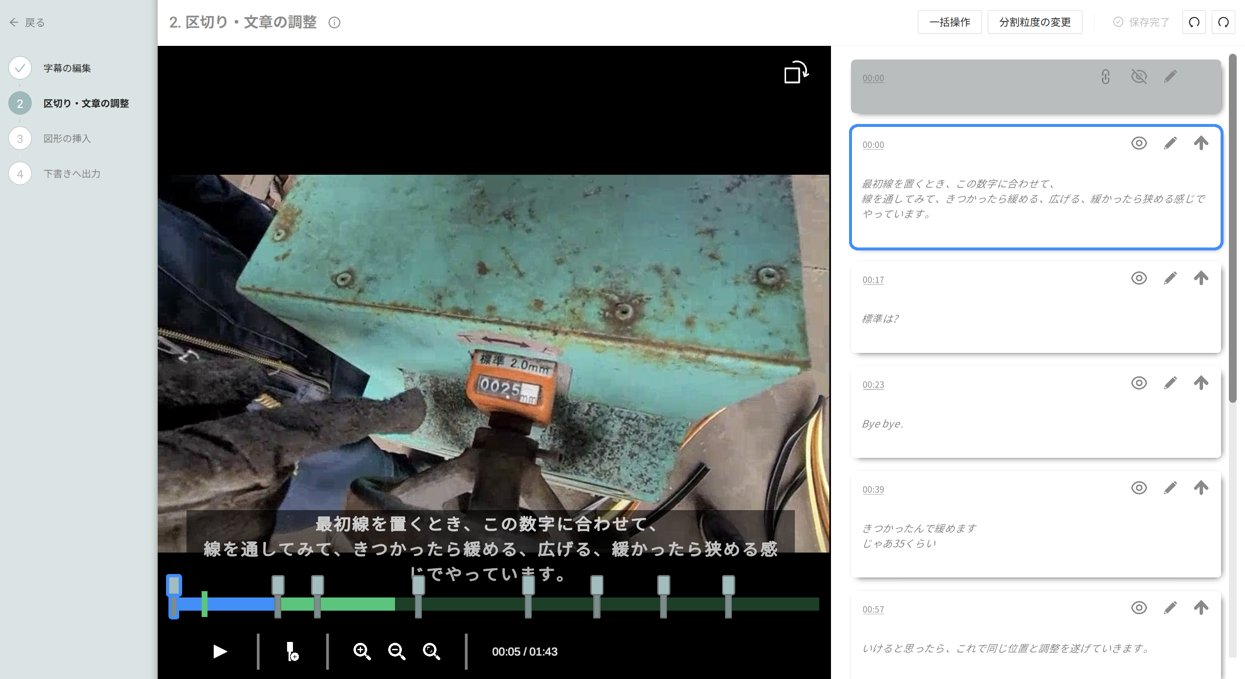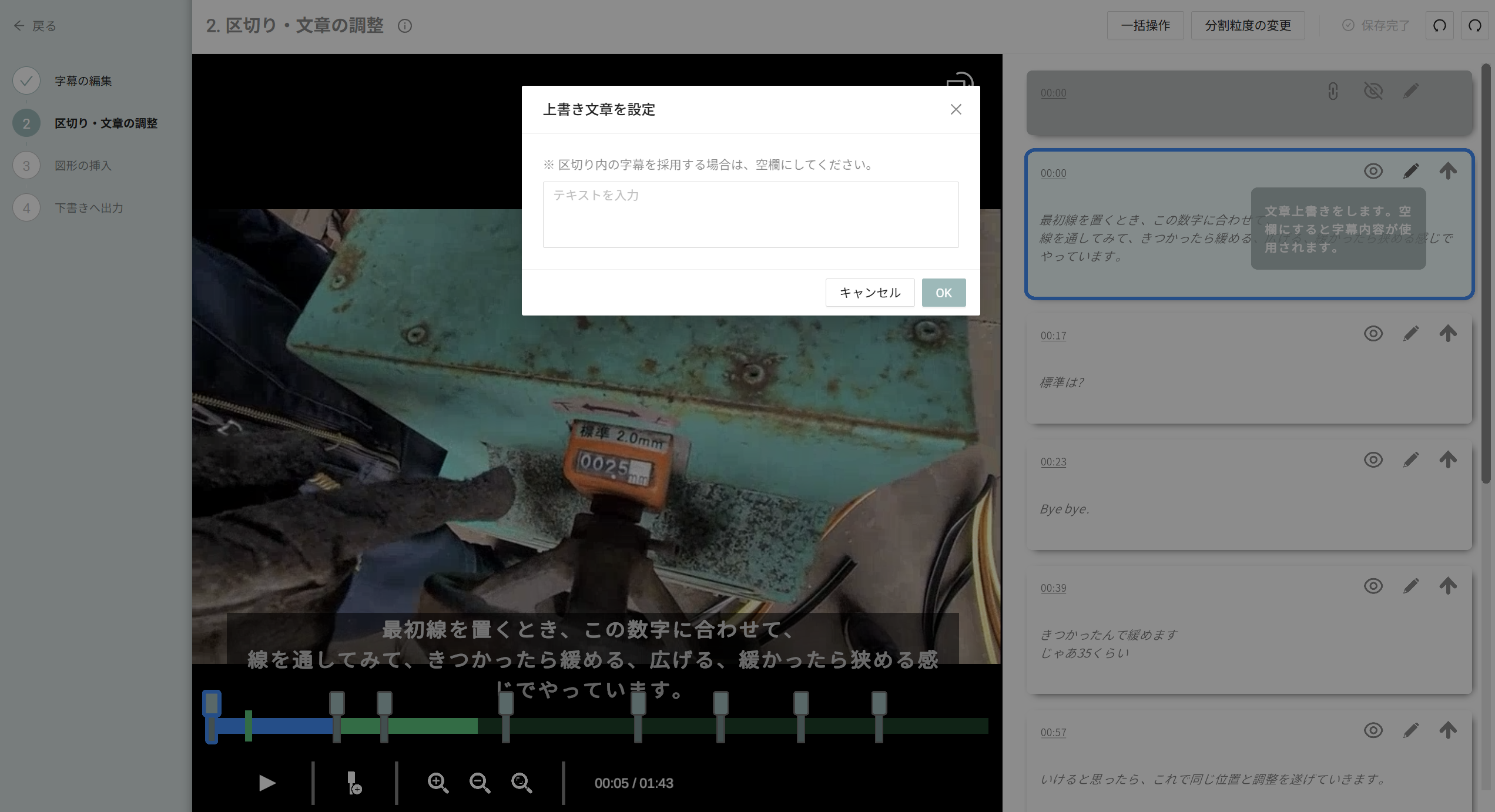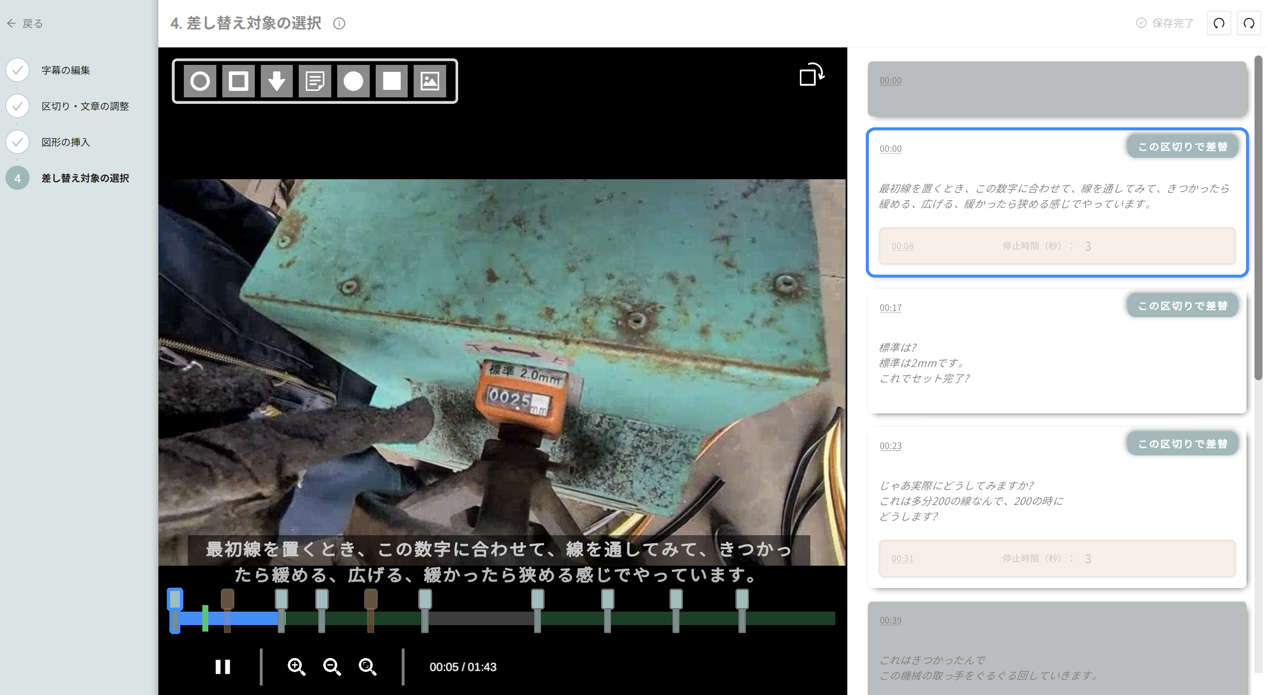 ●手順書へ出力後の、動画編集は「差し替え」に統一。どの区切りを採用するかもわかりやすくなりました。