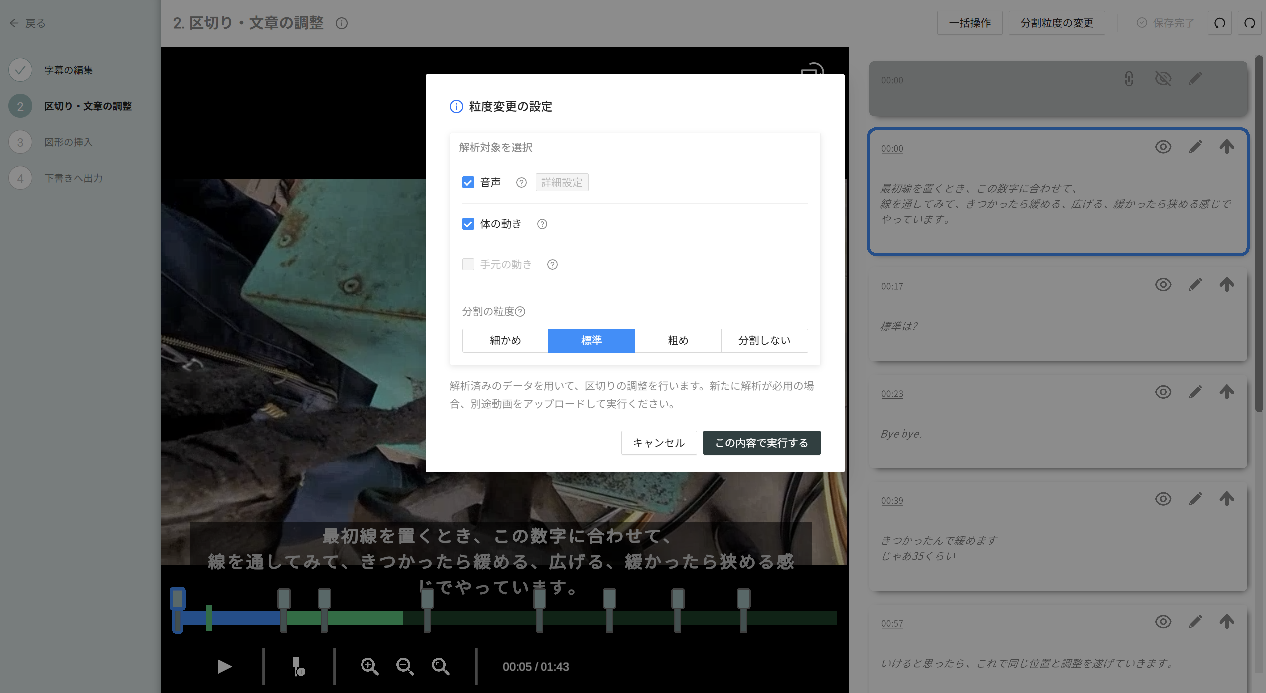 ●編集におけるテキスト編集や選択肢の決定画面(一括操作、粒度変更など)のUI変更