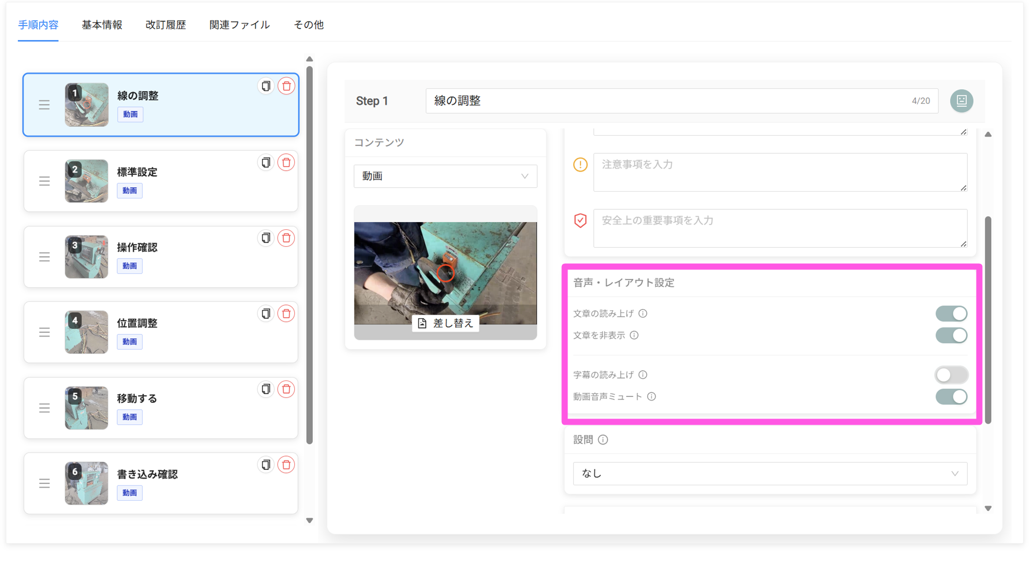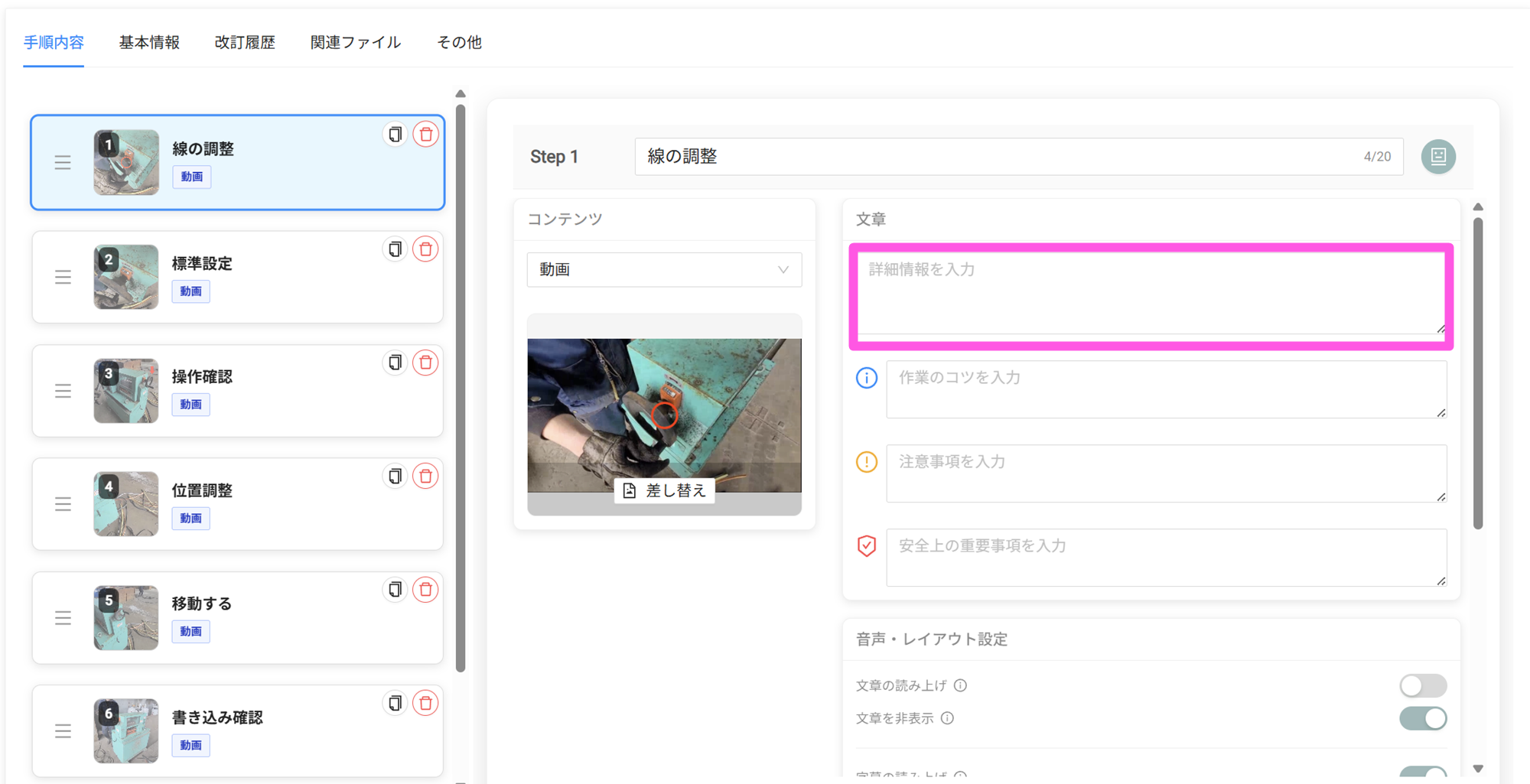 - 当該手順の[文章]の[詳細情報]に、対象の字幕文章を転記します。
