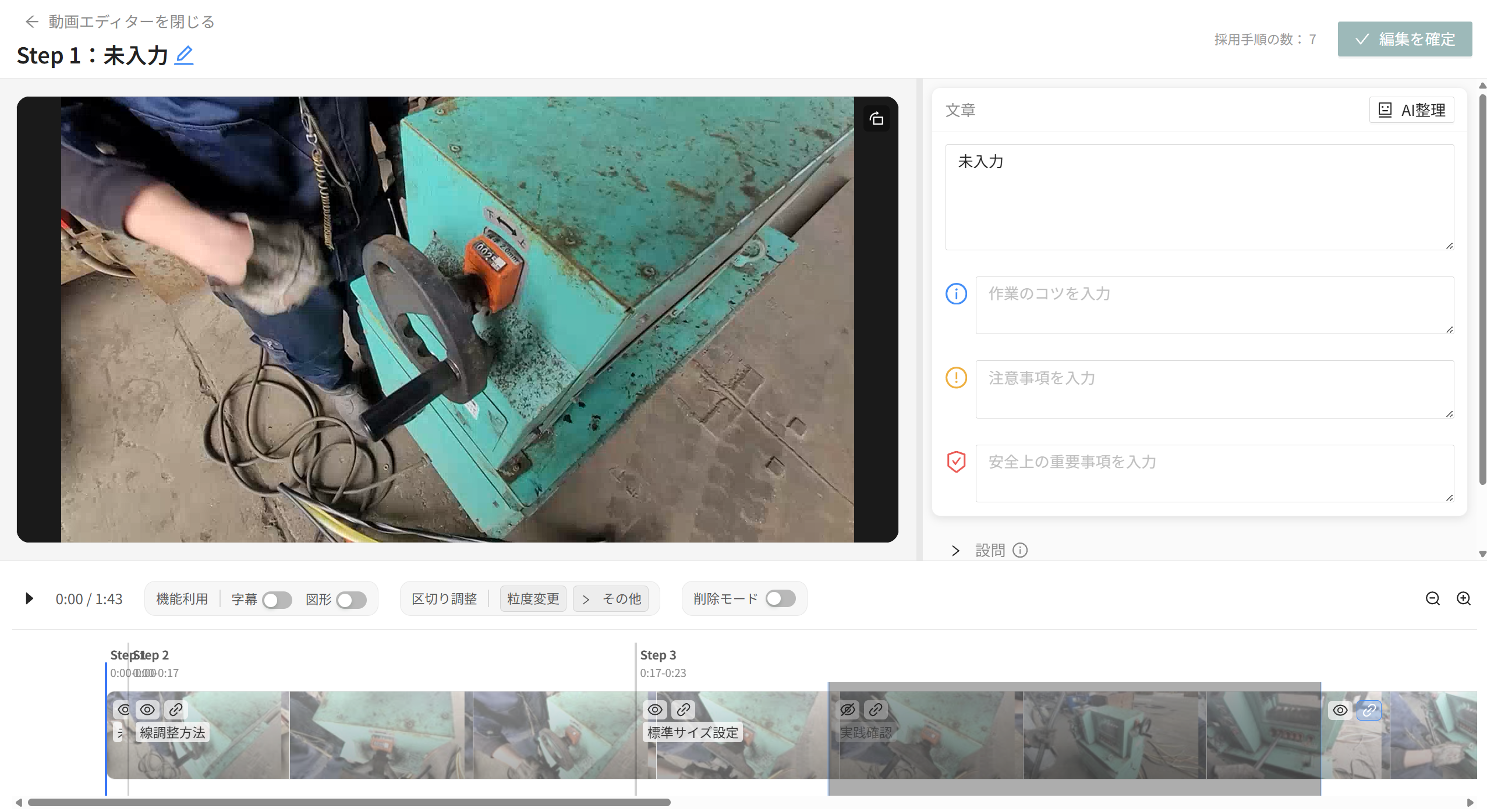 [削除モード]を有効にし、削除したい区切りの[×]ボタンをクリックし、[確定]で削除できます。