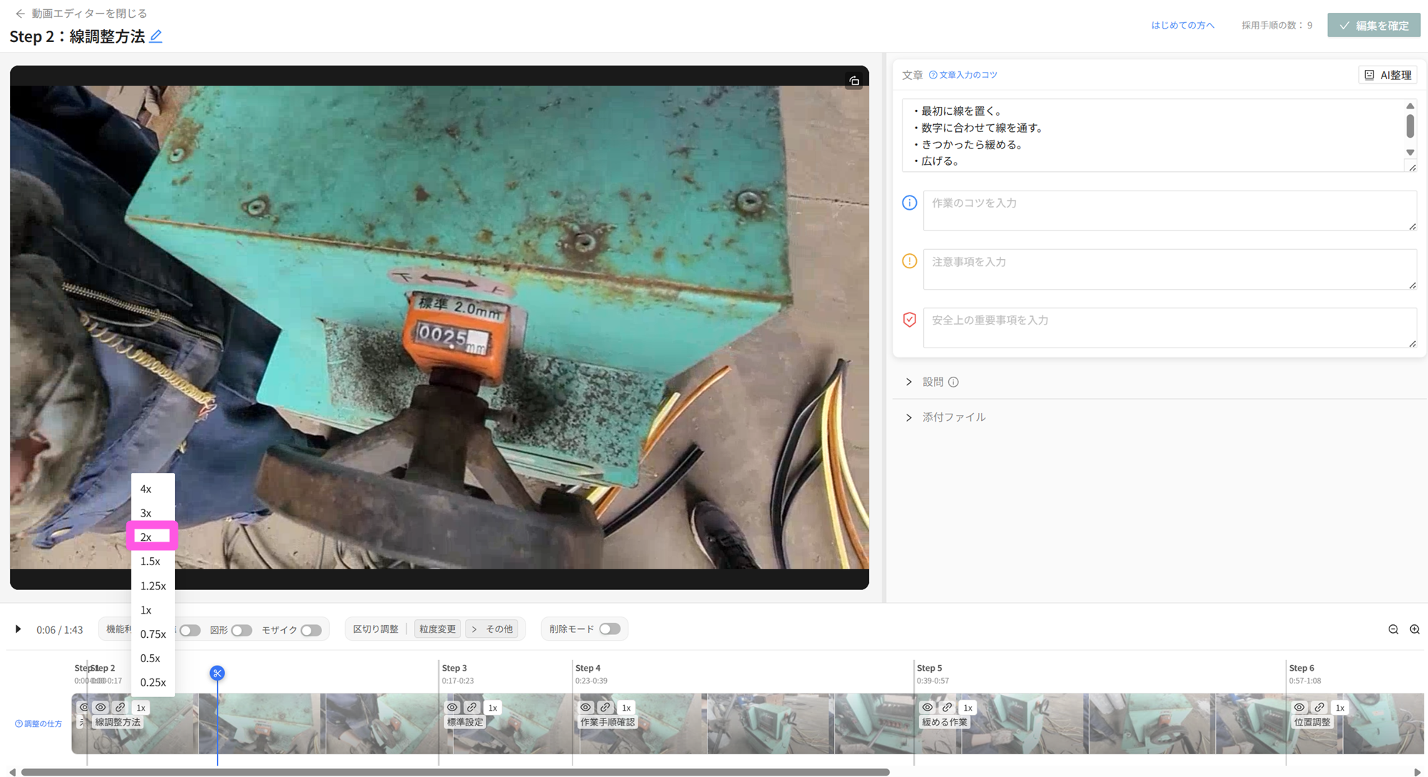 再生速度を変更する