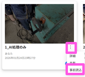 - オフライン環境下でも再生した手順書の[・・・]から[事前読込]をクリック