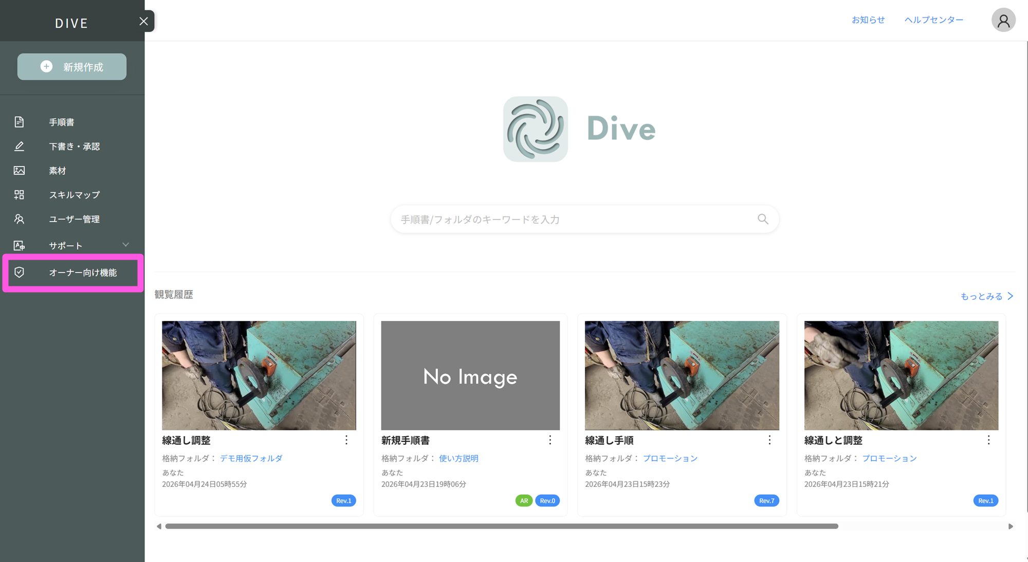 注意:設定後に、Diveのページに新たにアクセスすると本設定が反映されて利用できます。そのまま設定をする場合、ページの再読み込みをお願いします。